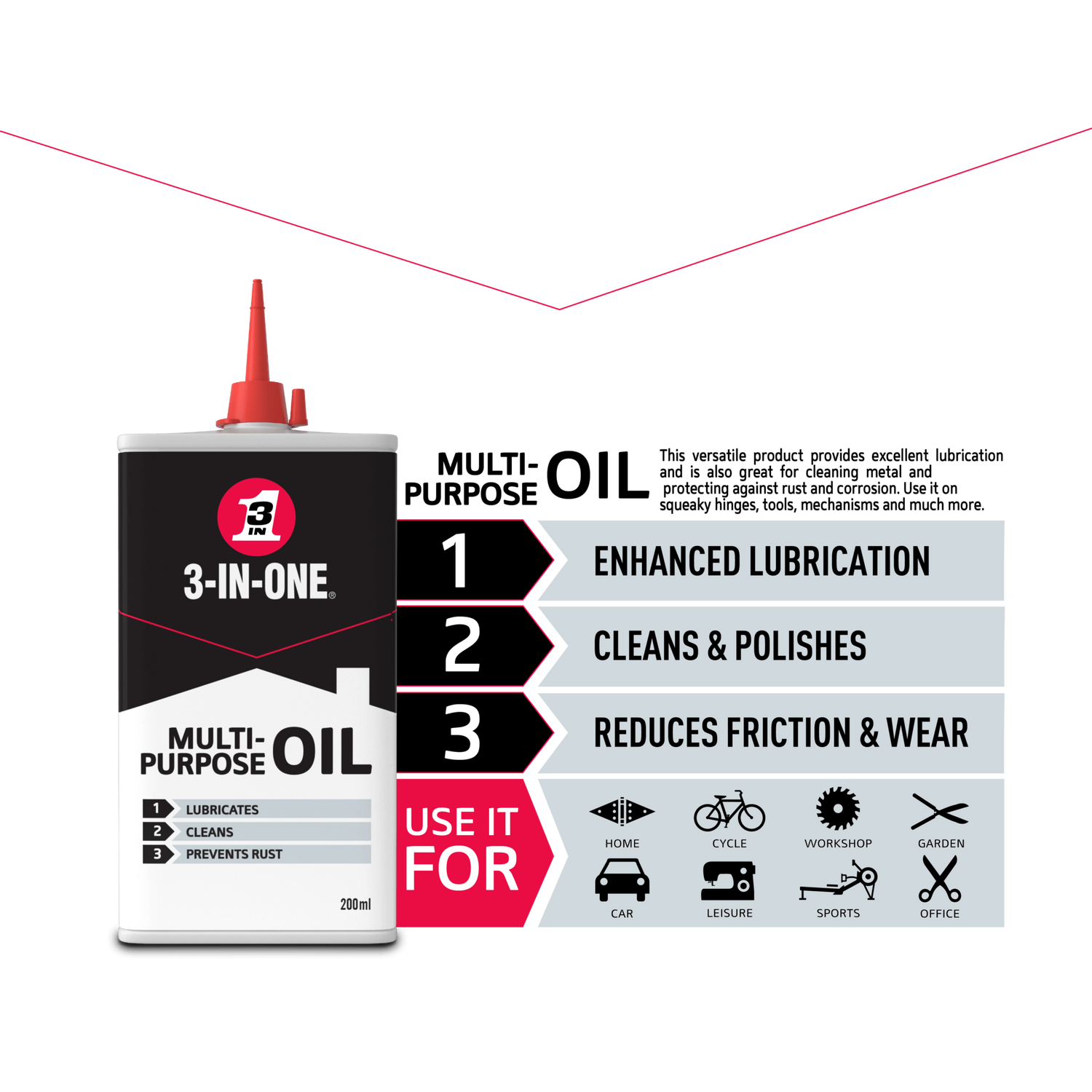 Multi-purpose oil that makes a useful addition to any cupboard or toolbox.