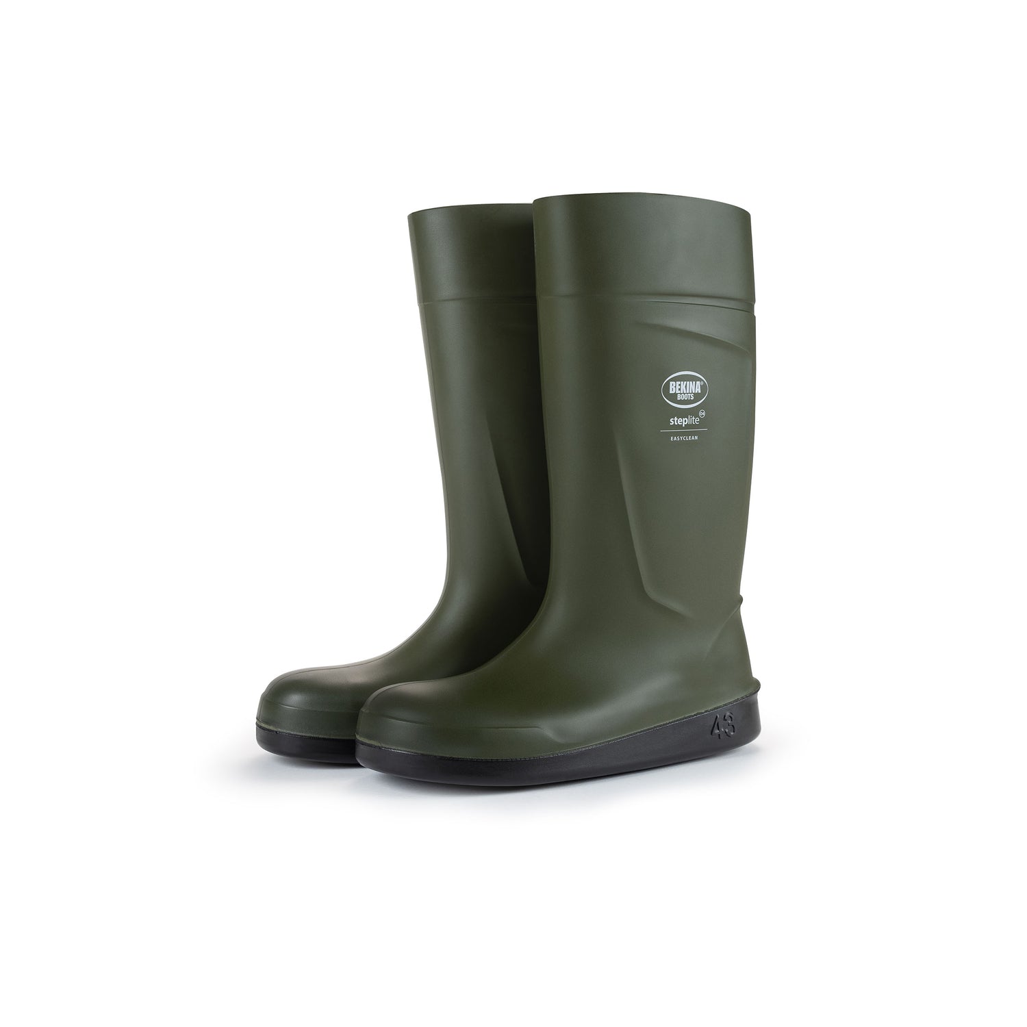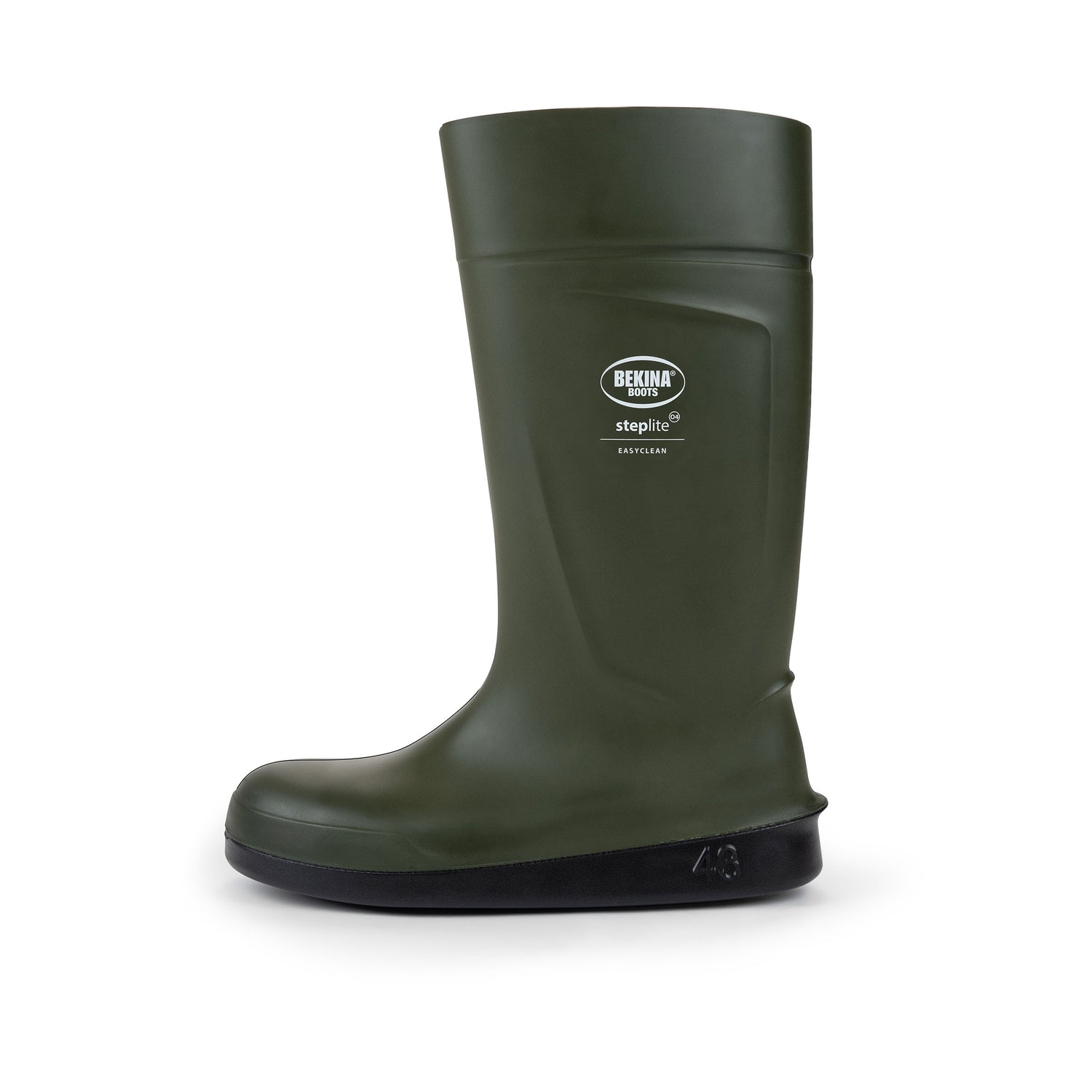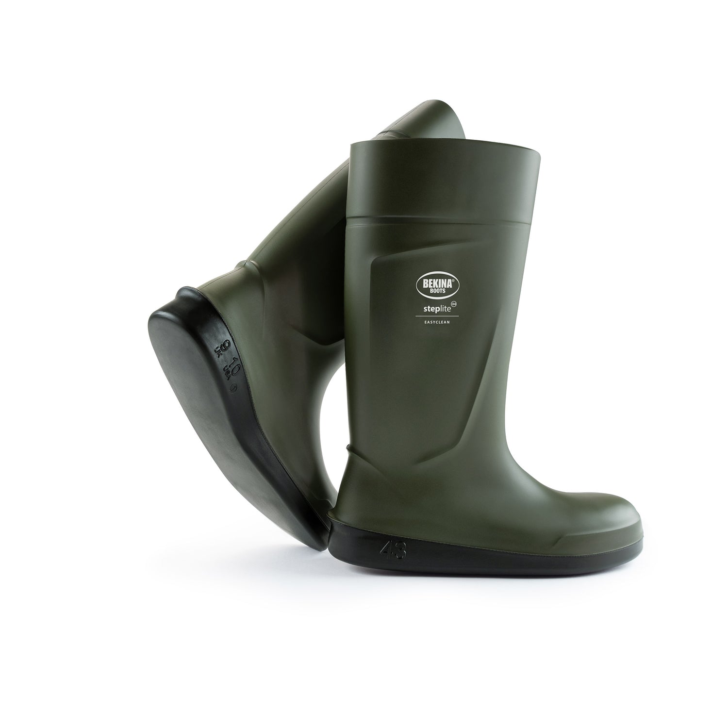 Bekina Steplite EasyClean feather light safety wellies for men and women, agricultural work wellies with flat soles, impervious to water, mud or detergents, insulating down to - 20 degrees, green