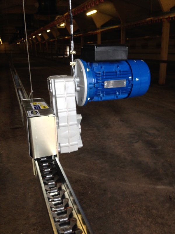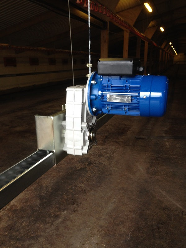 Single Track Flat Chain Feeder Drive Unit, Three Phase, 36m per minute - with Legs - Broiler Breeders